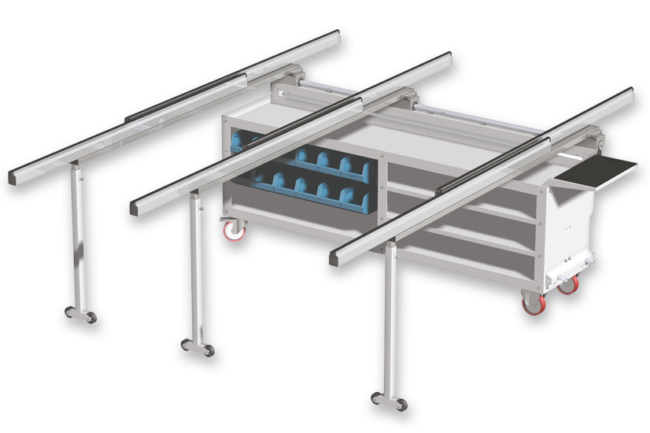 Table de montage pour n’importe quelle opération d’assemblage des menuiseries. Extensible, peut s’élargir et s’allonger. Surfaces d’appui recouvertes en EPDM. Attelage rapide pour outil pneumatiques, support pour boîtes en plastique. 4 pieds réglables ( roulettes en option) 6 boîtes en plastique.
