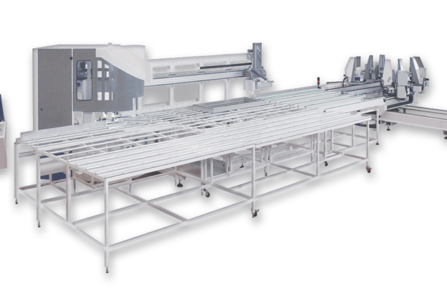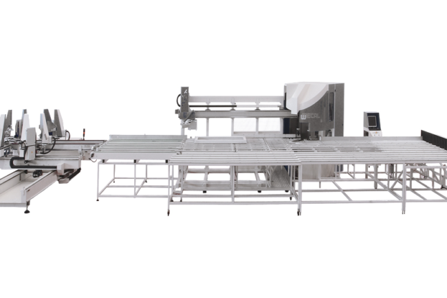Cette ligne automatique HSL comprend une soudeuse horizontale à 4 têtes, une table de refroidissement et une alimentation pour les panneaux soudés et d’une nettoyeuse à 2 axes CNC.