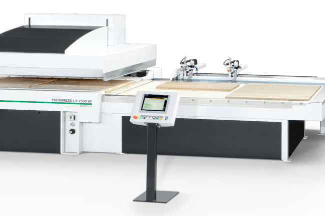 Panneauteuse haute-performance pour toutes les applications dans le domaine du bois massif. Avec la ProfiPress C, vous obtenez une qualité de joint parfaite et des surfaces extrèmement planes car les lamelles sont parfaitement alignées. Coupe en largeur des panneaux en automatique.