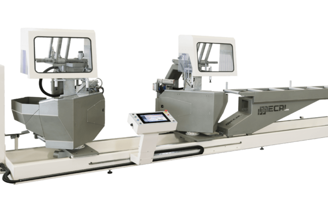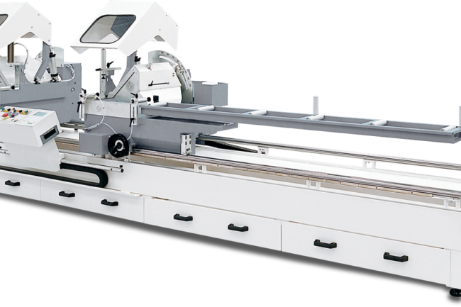 Tronçonneuse double tête, avec une unité à déplacement automatique, pour profilés en aluminium. Concrètes et pratiques, pour satisfaire toutes les exigences !